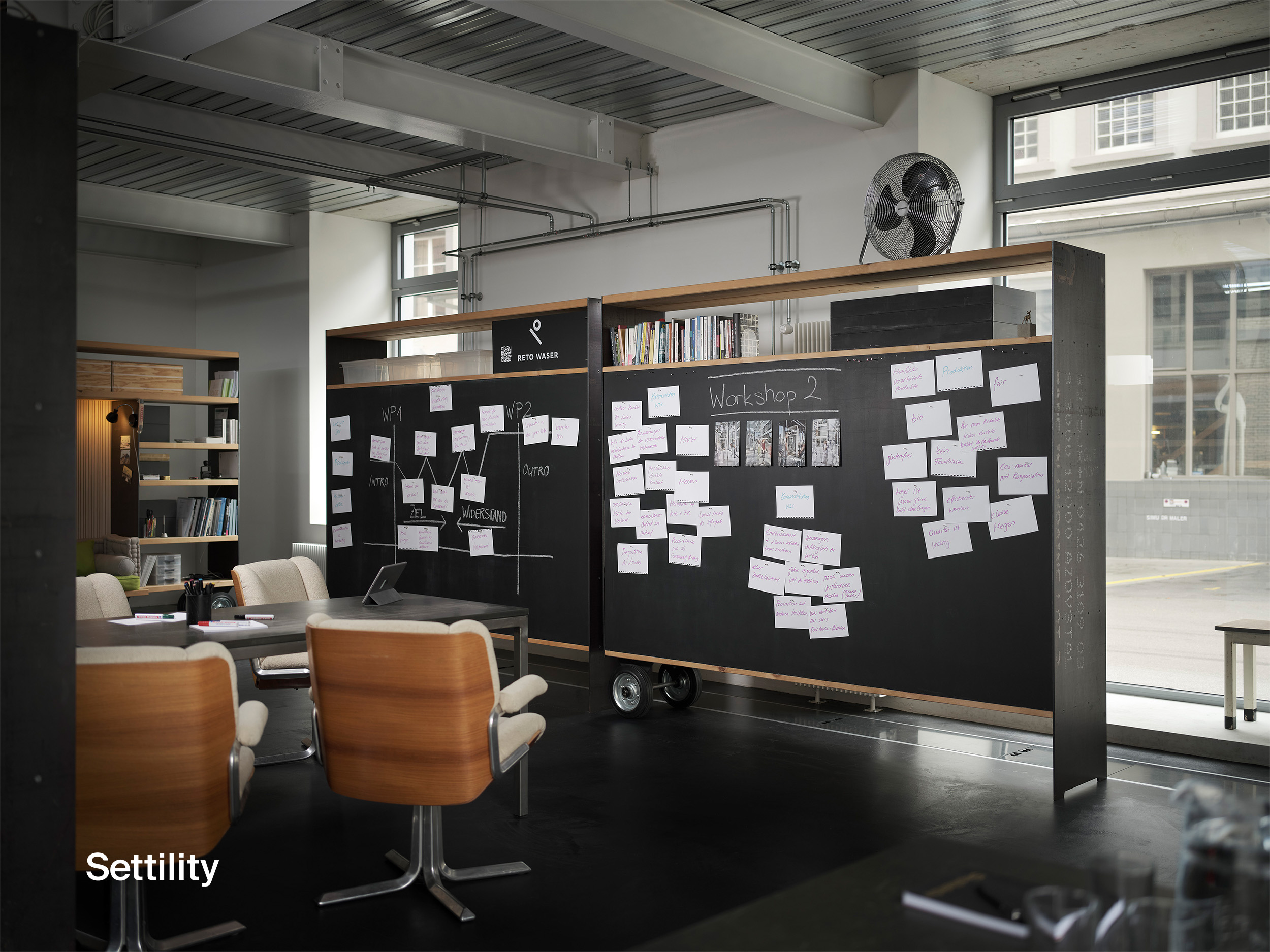Nutzen Sie die Räume Ihres Unternehmens vielseitiger, überraschen Sie Ihre Kundschaft im Laden mit saisonalen Veränderungen oder schaffen Sie für Studierende ihrer Bildungsinstitution inspirierende Atmosphären. Jedes Settility-Modul lässt sich voll ausgestattet, mit wenigen Handgriffen verschieben. Wir entwickeln gemeinsam mit Ihnen die passenden Sets für Ihr Tagesgeschäft.