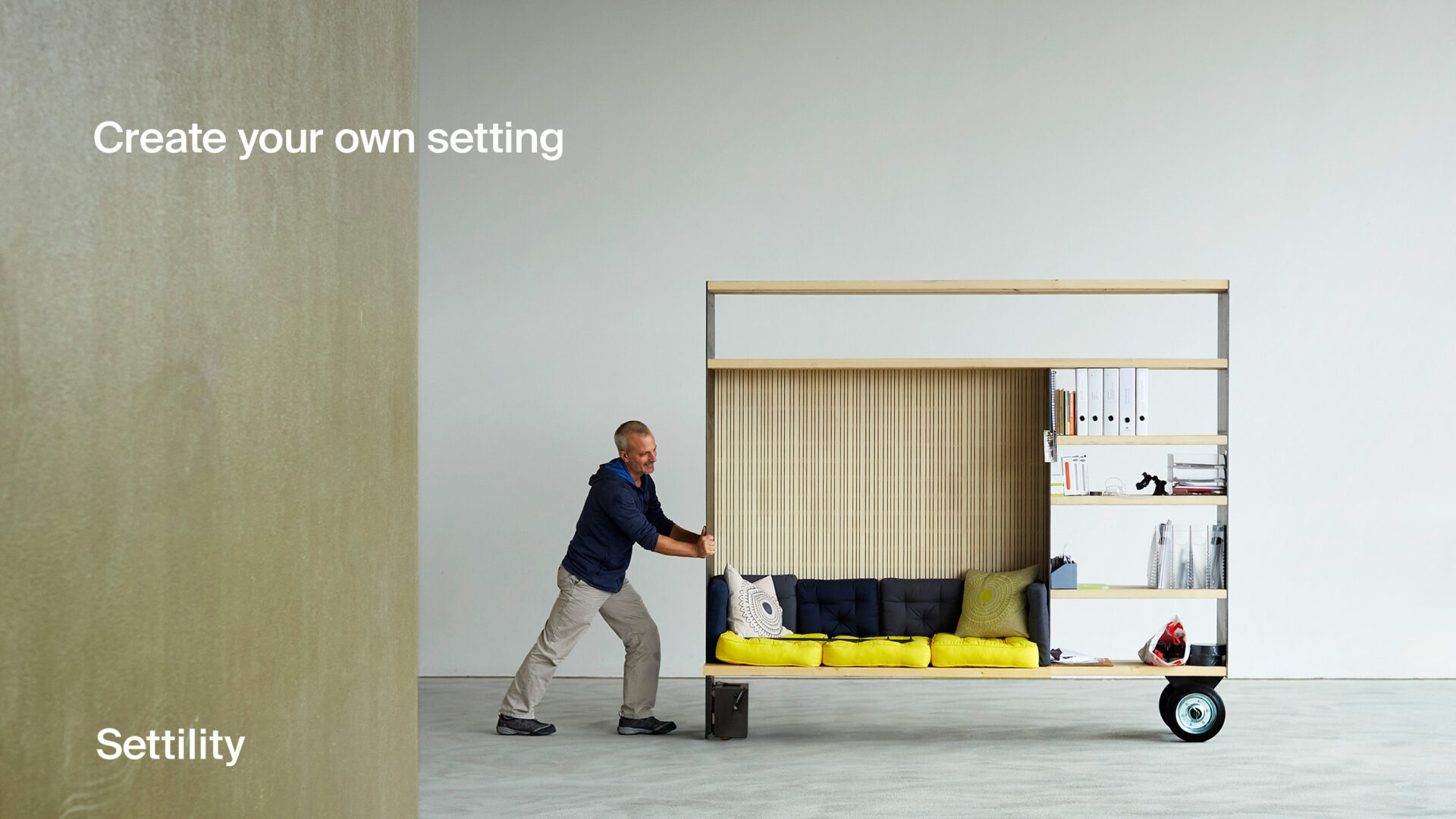 Gestalten Sie mit Settility Orte, die sich flexibel nutzen lassen. Wenn sich ein Treffpunkt Ihres Unternehmens oder Ihrer Institution im Handumdrehen in eine Arbeitszone, einen Rückzugsraum, eine Verkaufsfläche, eine Workshop-Location, eine Lobby oder ein Pop-up-Restaurant verwandeln soll, profitieren Sie von der As-a-Service-Einrichtungslösung Settility.